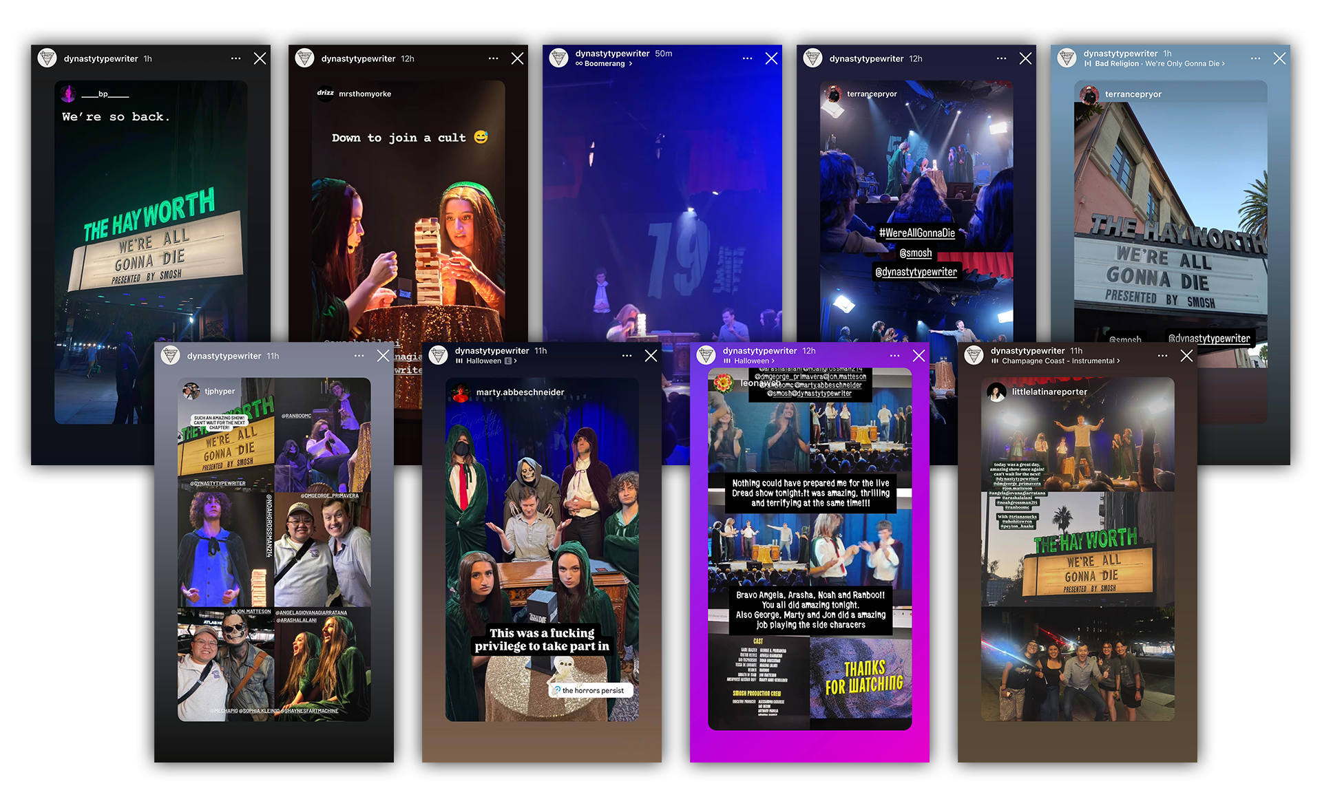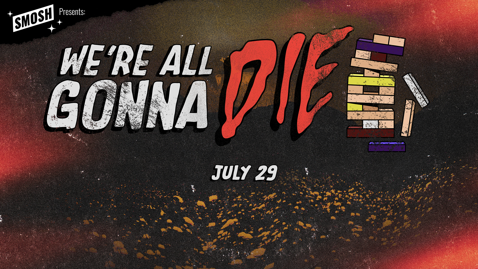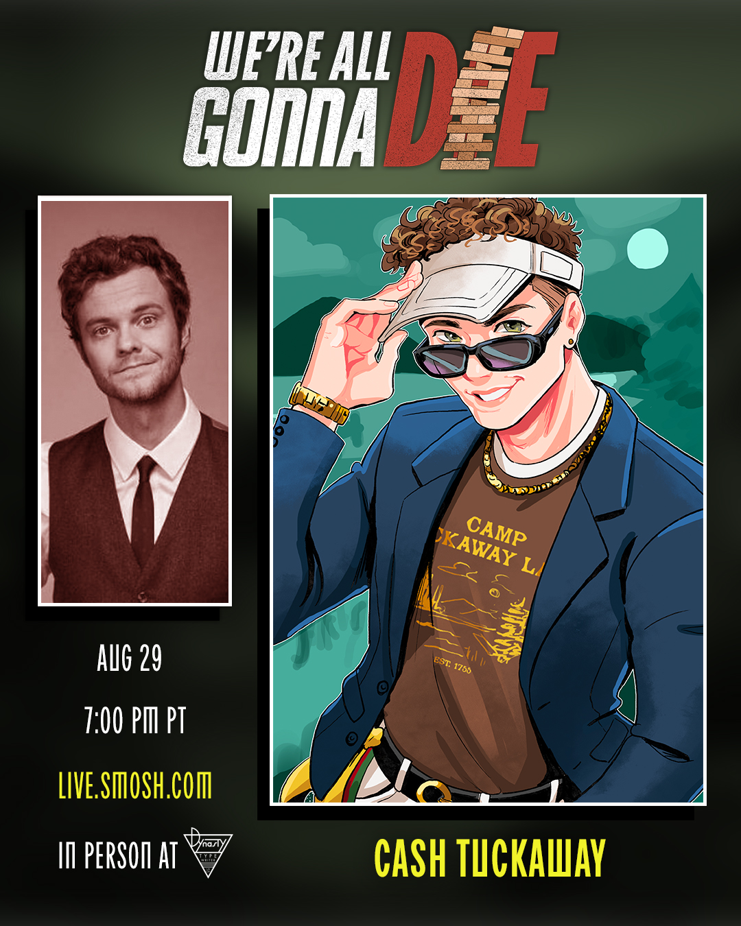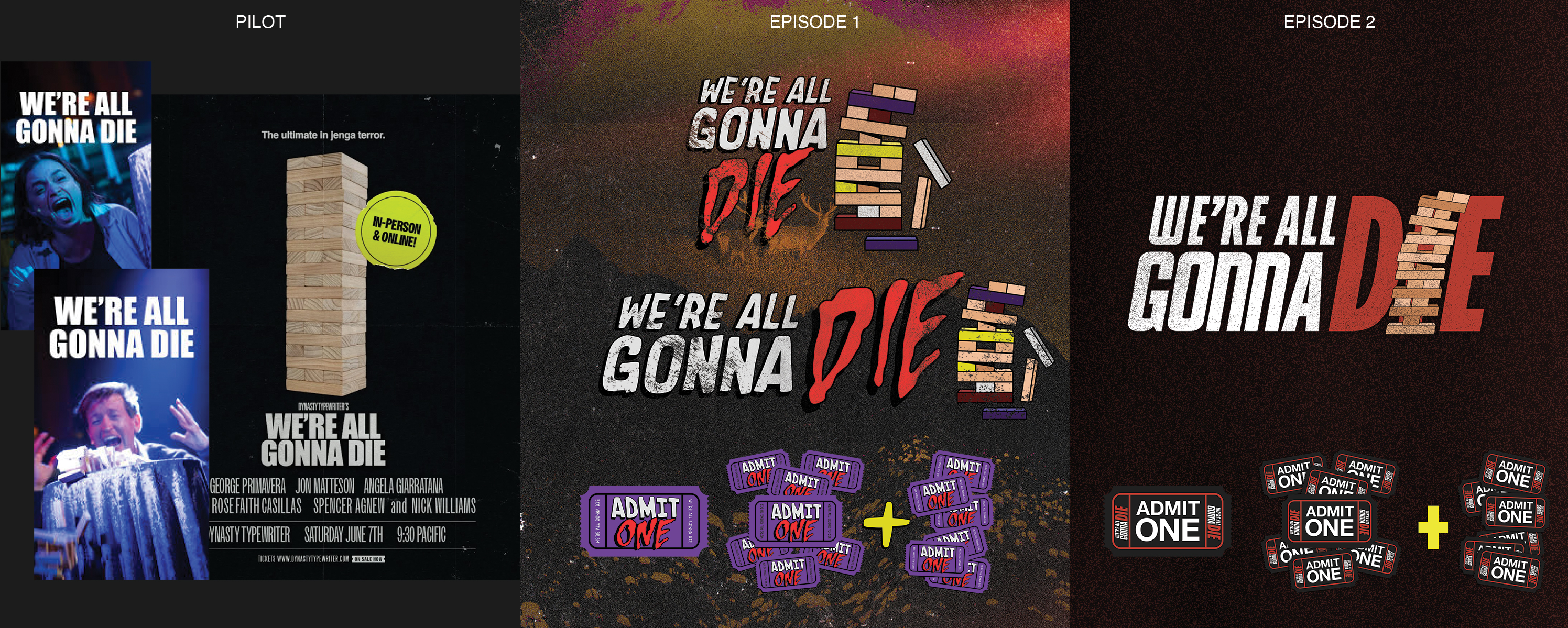 Smosh Presents: We’re All Gonna Die is a seven-episode live show series at Dynasty Typewriter. The pilot launched with almost no branding, relying on raw photography and simple type. I was tasked with quickly creating branding for Episode 1 in under two hours, then evolving the identity into something scalable for the rest of the season.